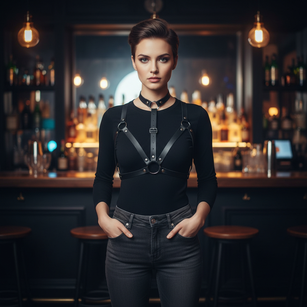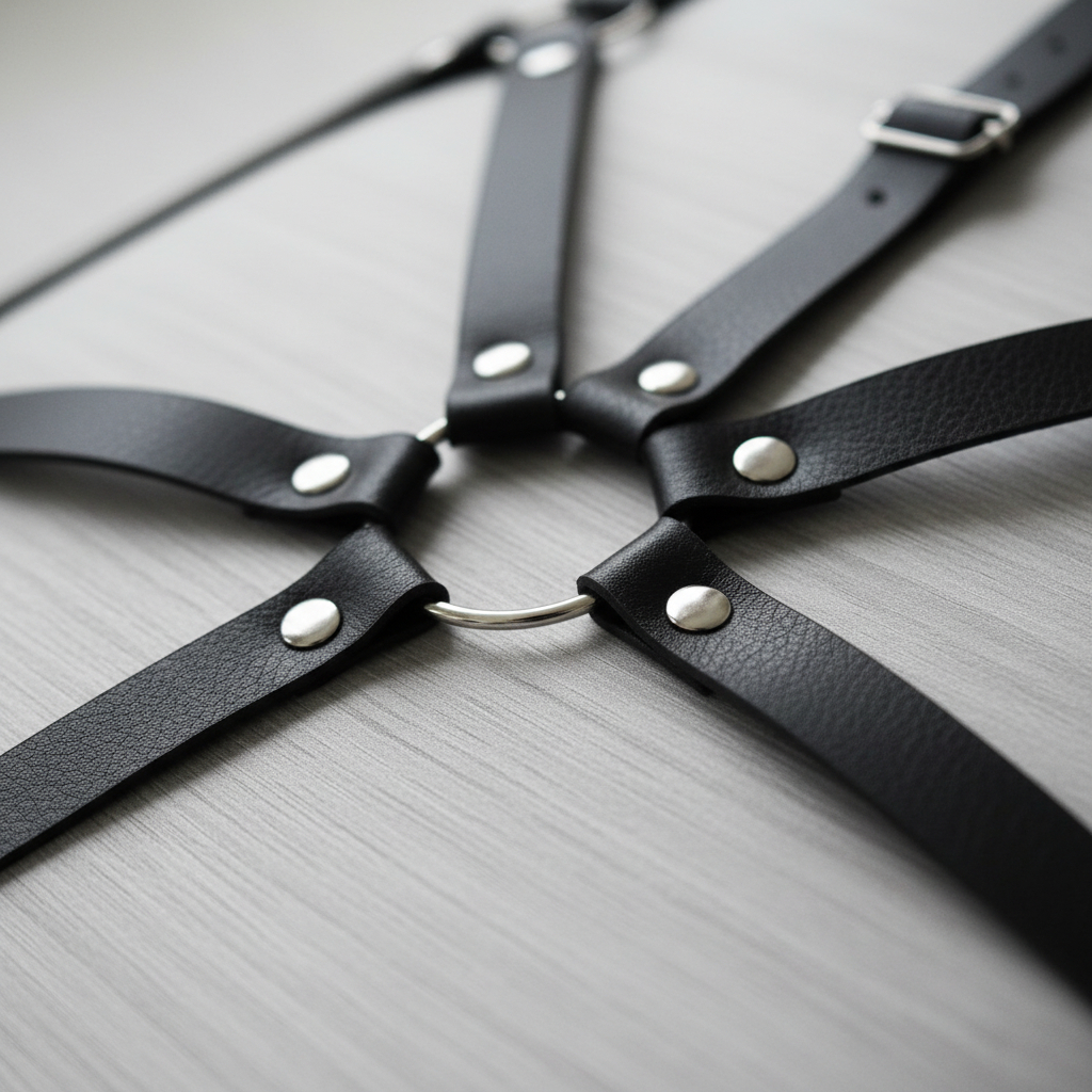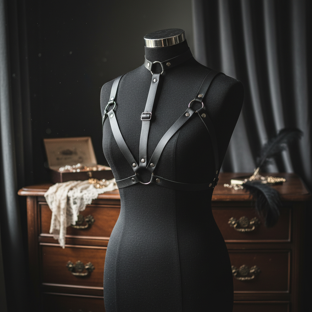 Con un diseño que combina la sofisticación del encaje con la resistencia del ecocuero, este arnés se adapta cómodamente a diferentes tipos de cuerpo. Su estilo gótico y erótico aporta un toque de misterio y seducción, ideal para quienes desean destacar su personalidad única.