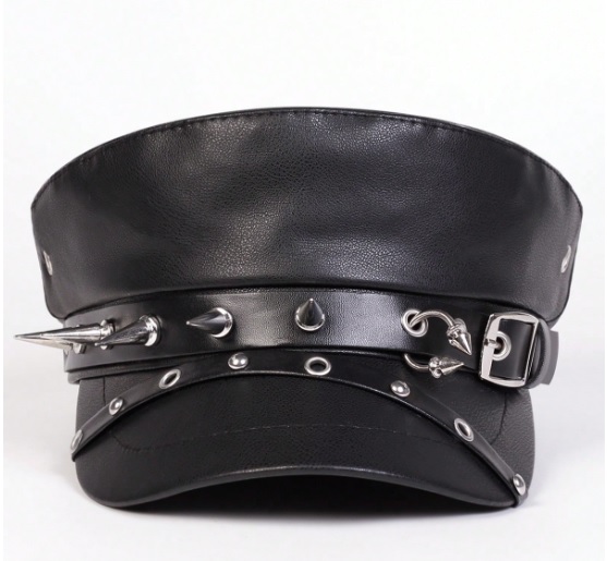 Completá tu outfit con esta gorra gótica negra de diseño impactante, perfecta para quienes buscan un estilo dark, kpop y punk urbano.