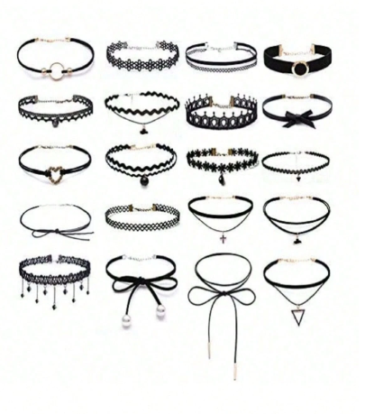 Estos chokers góticos negros son el accesorio ideal para completar cualquier outfit dentro del estilo dark, alternativo o urbano. Con múltiples diseños disponibles, incluyen detalles como encaje, cadenas, cruces, moños, argollas y dijes que aportan personalidad y estilo a cada look.