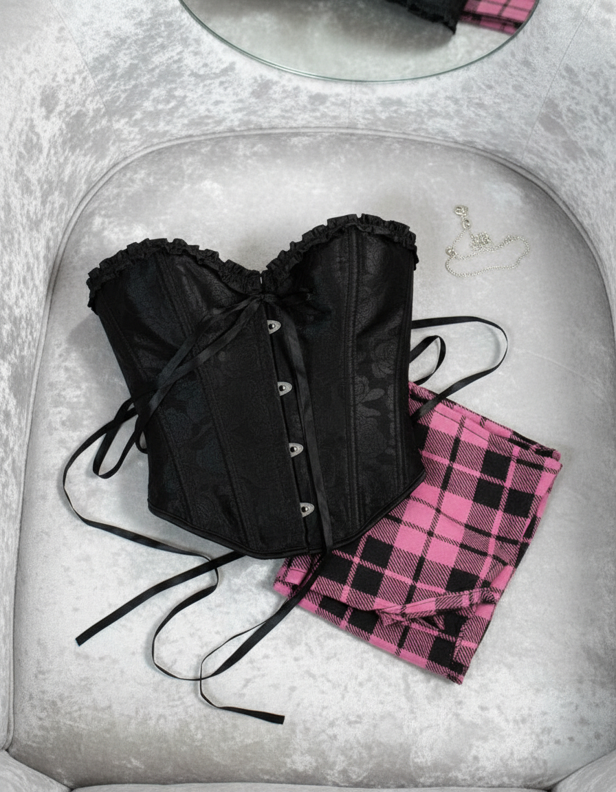 Corset Victoriano Petit en color negro, de estilo clásico y sofisticado. Define la figura con un diseño delicado y versátil, ideal para looks dark, coquette o inspirados en la moda de época.