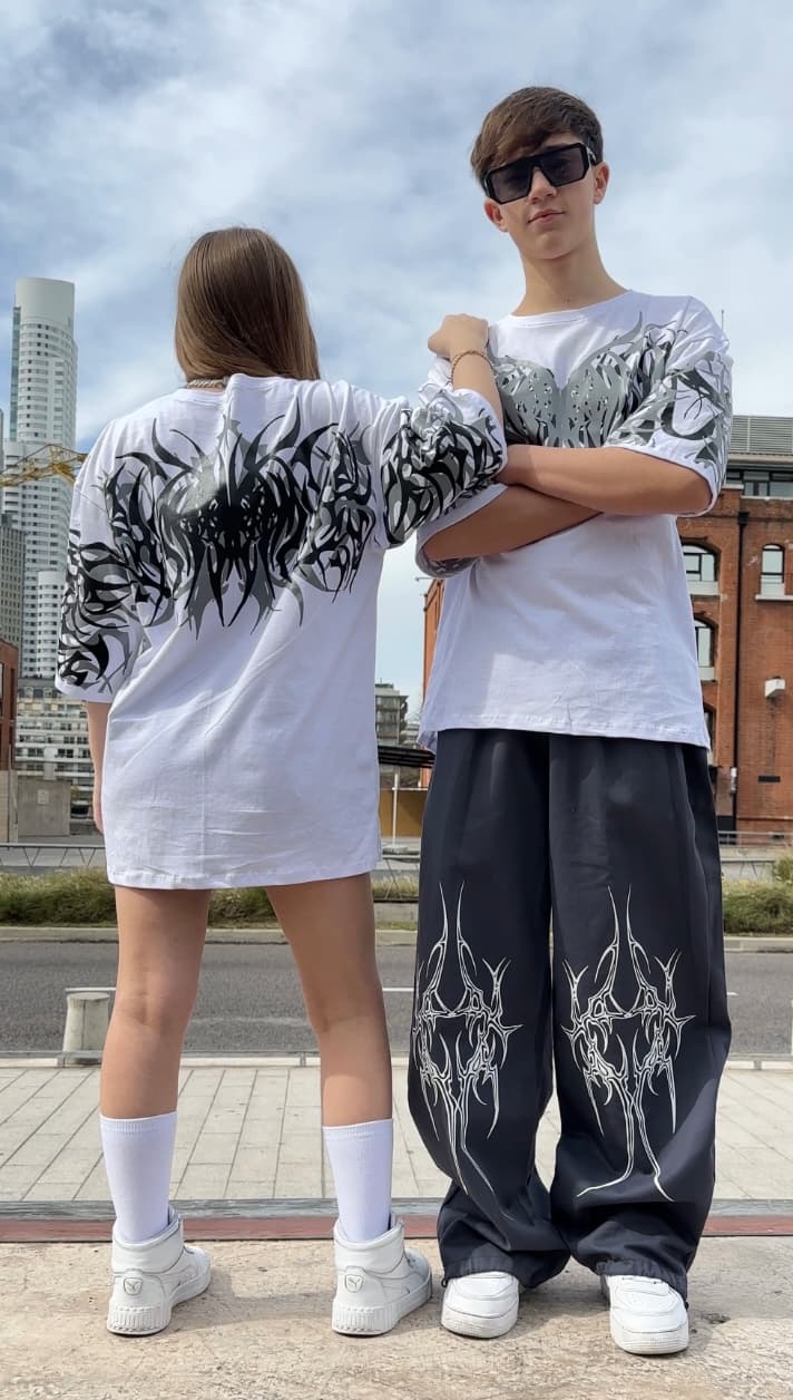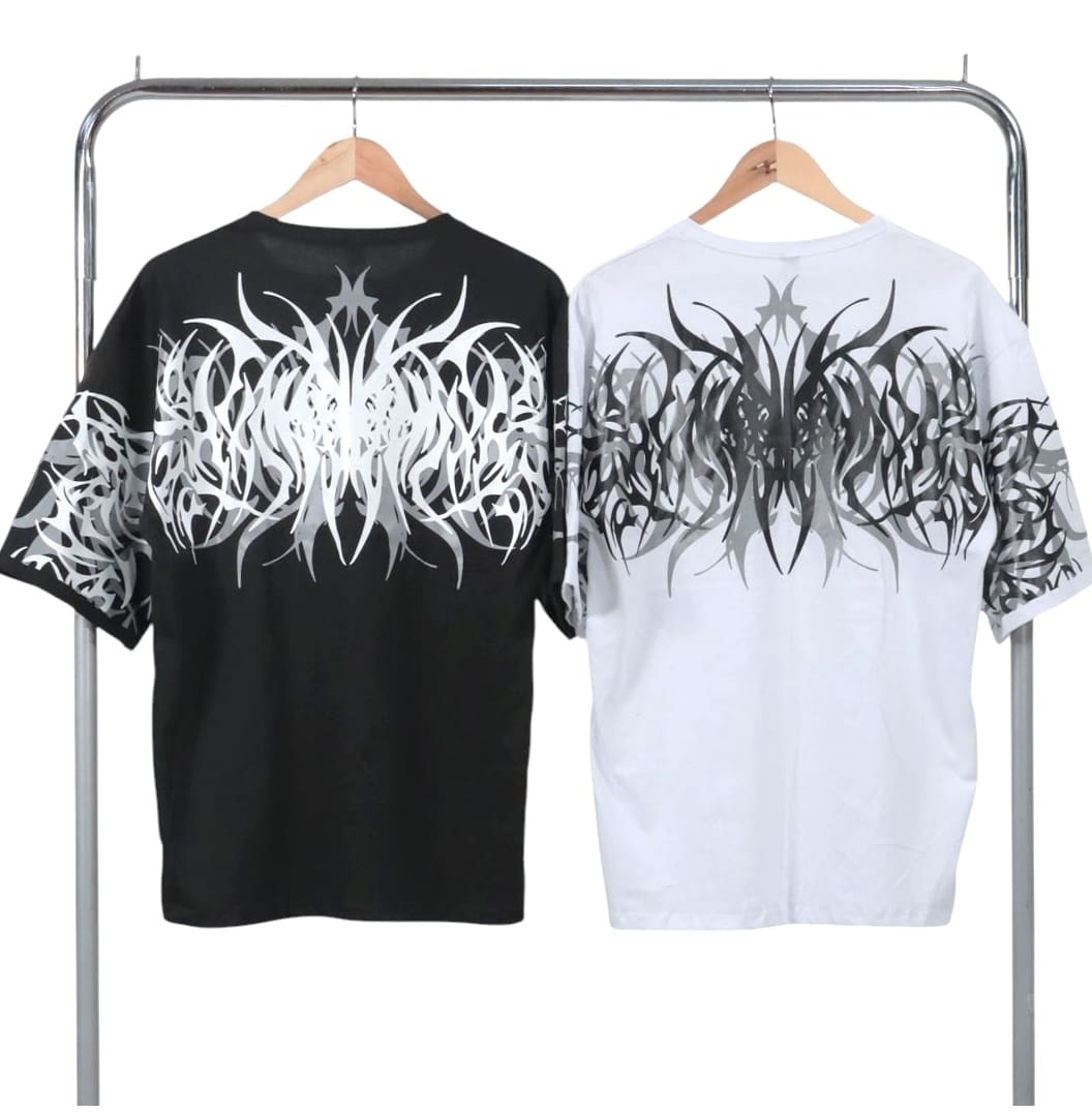 Con estampa tribal extendida en espalda y mangas, este diseño combina estética dark, influencia streetwear y energía alternativa.