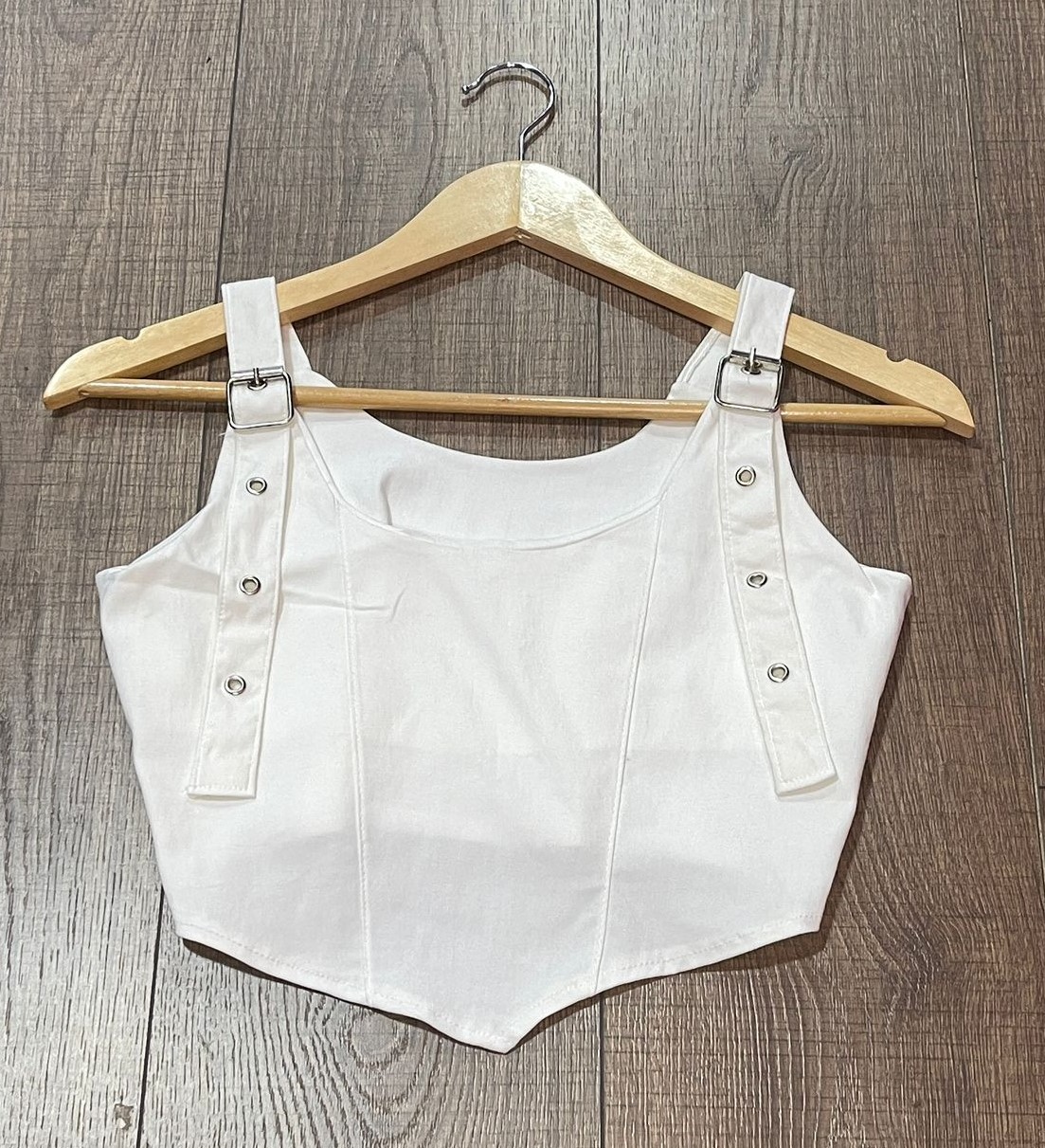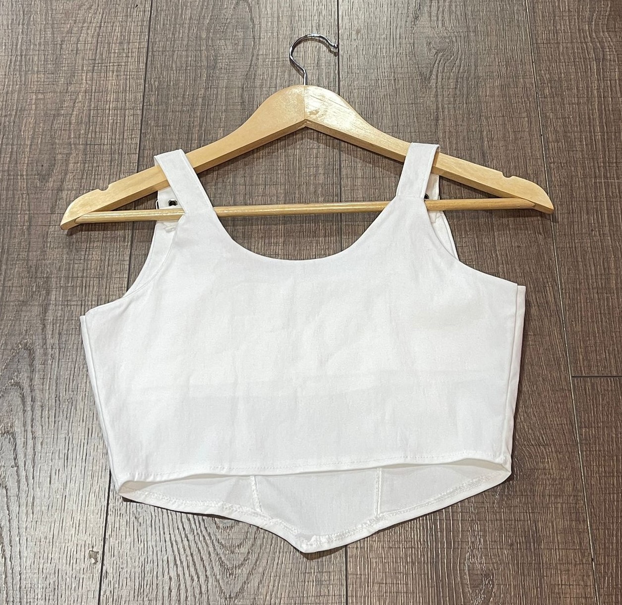 Top blanco y negro clásico, confeccionado en tela liviana y flexible. Perfecto para combinar con faldas o jeans, aporta frescura y simplicidad al look.
