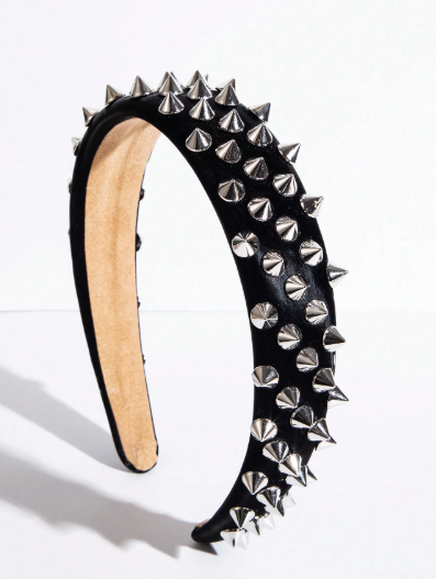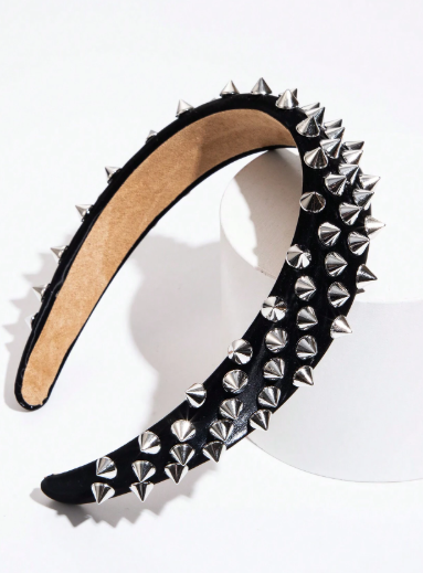 Las tachas distribuidas a lo largo de toda la vincha generan un efecto visual fuerte, ideal para destacar y completar looks con personalidad. Su interior forrado brinda mayor comodidad y sujeción, permitiendo usarla durante largos períodos sin molestias.